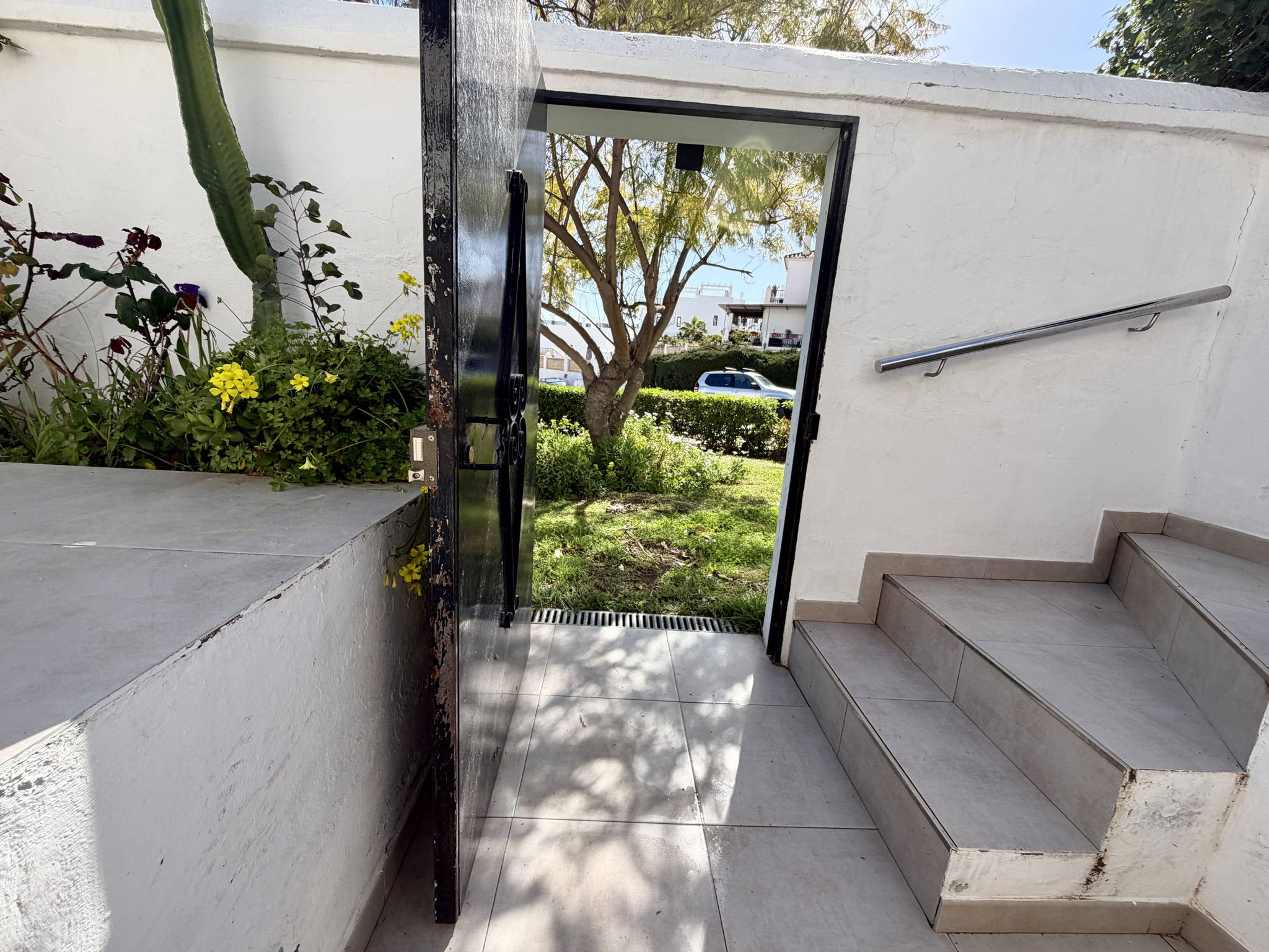 Bien que la propriété ne dispose pas de place de parking privée, il est facile de se déplacer. Il existe un parking gratuit dans la rue au sein même du lotissement Tropicana, généralement disponible juste en face du logement. L'entrée secondaire depuis la terrasse inférieure est très pratique pour transporter rapidement vos bagages ou vos courses sans avoir à emprunter les escaliers communs.À noter :