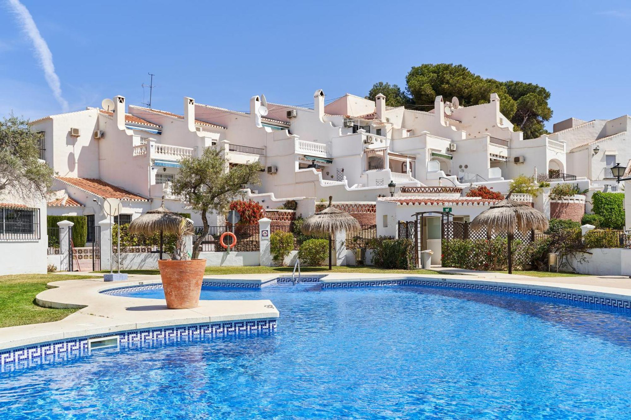 ✔ Installations de la résidence : Vous aurez accès à une grande piscine communautaire entourée de jardins avec des parasols et un bar-restaurant qui propose des petits-déjeuners, des menus quotidiens et des retransmissions sportives en direct.✔ Vues et orientation : Sa position surélevée et son orientation sud permettent de profiter d'une vue sur la mer constante depuis la terrasse, garantissant un ensoleillement direct pendant une grande partie de la journée.