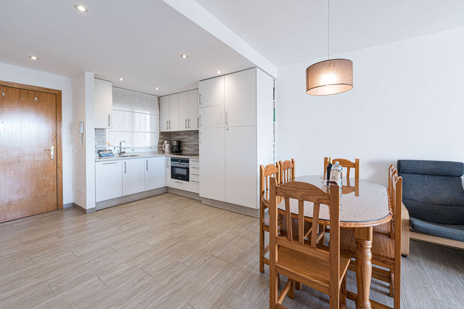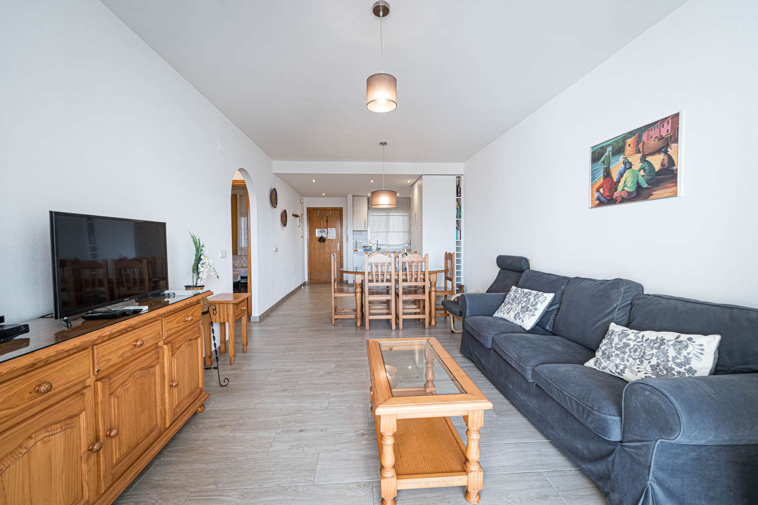 Le salon donne sur une terrasse privée où vous pourrez prendre votre petit-déjeuner ou lire avant de descendre à la plage. Conçue pour des vacances en famille, la propriété est baignée de lumière naturelle dans les pièces principales, mettant en valeur les finitions de la récente rénovation. C'est l'espace idéal pour organiser votre journée tout en consultant l'offre gastronomique locale grâce au Wi-Fi haut débit disponible dans tout le logement.