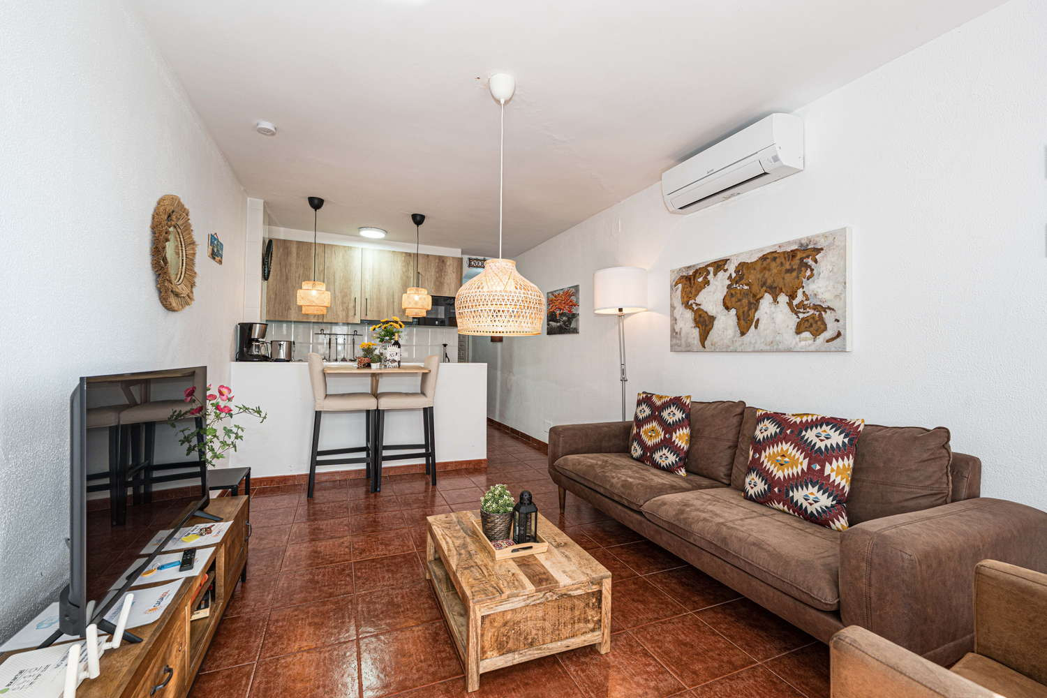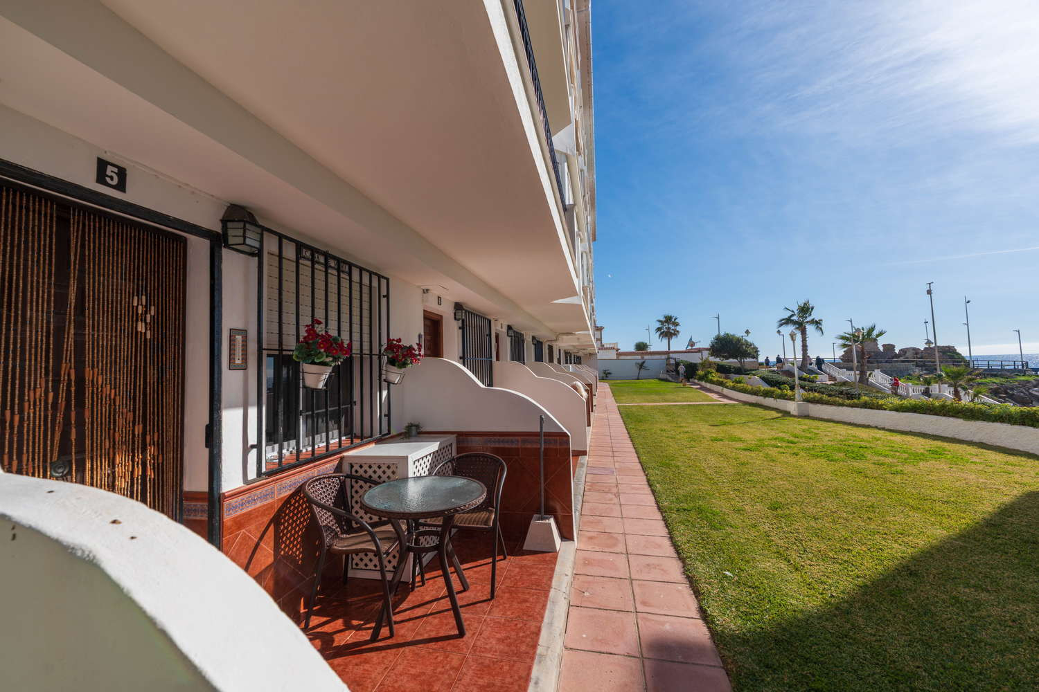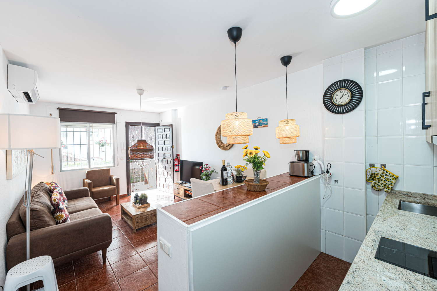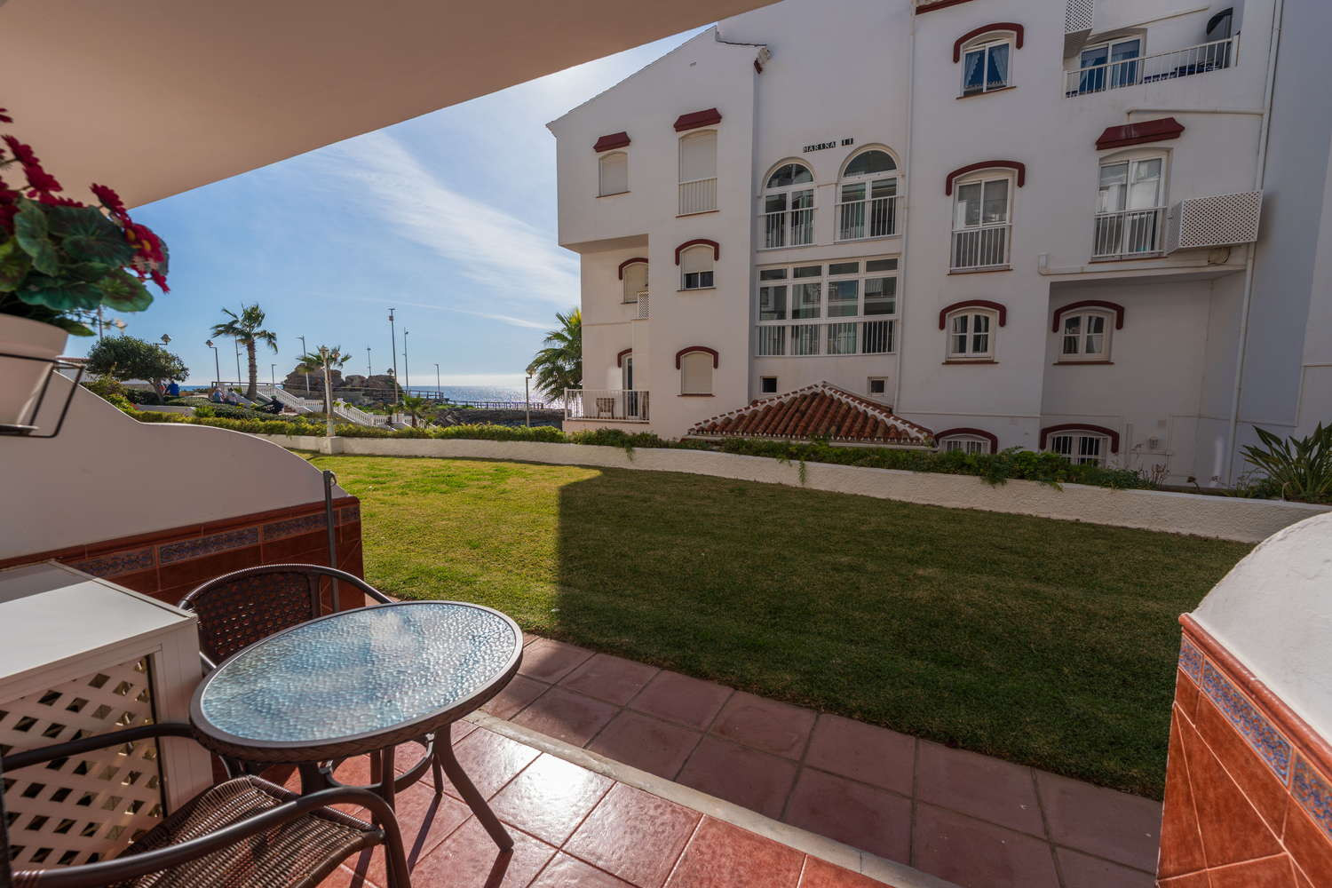 Vie intérieure et extérieure : La vie ici se déroule entre le salon et sa terrasse privée au niveau de la rue. La fluidité de l'espace vous permet de passer du canapé à l'extérieur en une seconde, faisant de ce coin avec vue sur la mer l'endroit idéal pour ces dîners tranquilles après une journée passée à explorer les criques de Nerja.