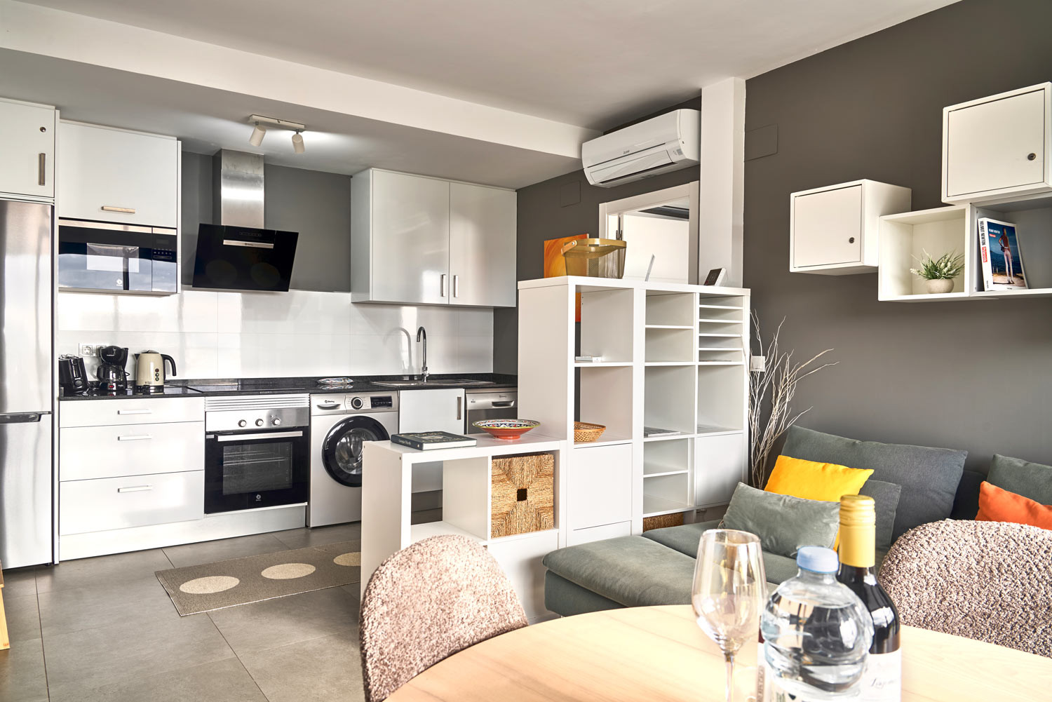 Commodités : Wi-Fi, climatisation, cuisine équipée d'appareils électroménagers dernier cri, lave-linge et accès à la salle de sport commune.
