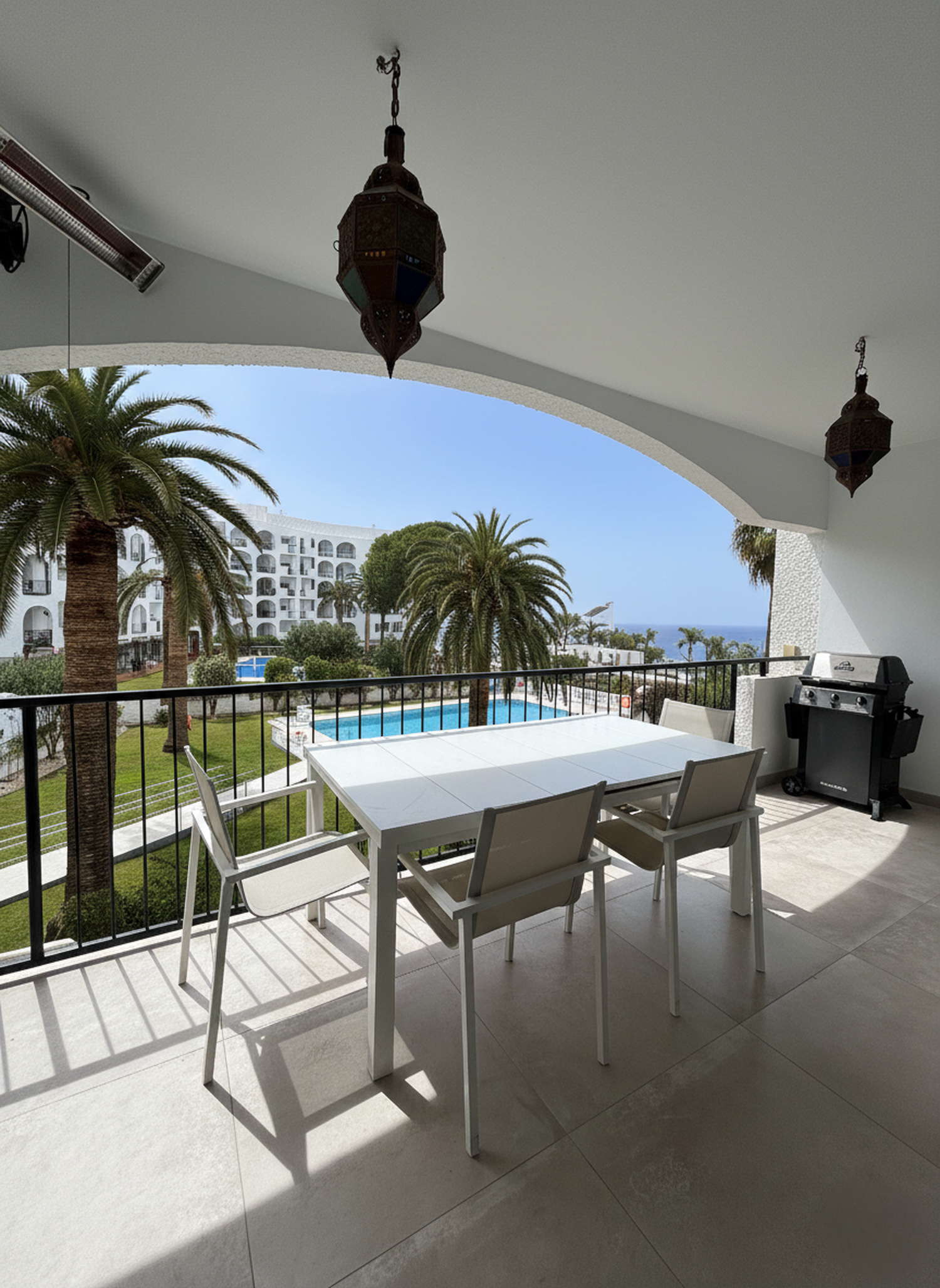 À quelques pas de la plage, vous serez chez vous en un clin d'œil. Carabeo 20 est un appartement rénové où les vacances se déroulent sans effort : une grande cuisine avec un îlot pour se retrouver, une vue relaxante et tout à portée de main dans l'un des quartiers les plus prisés de Nerja. Ici, pas besoin de planifier à l'avance, tout est à portée de main. À la tombée de la nuit, les grandes portes coulissantes du salon s'ouvrent sur la terrasse, laissant entrer la brise. Pendant que certains se détendent après un plongeon dans la piscine d'eau salée, d'autres peuvent préparer le dîner dans le confort total de l'îlot central. L'emplacement et le design jouent en votre faveur, vous permettant de profiter davantage et de voyager moins.La propriété : Appartement moderne d'environ 80 m² dans un complexe résidentiel idéal pour les familles. Peut accueillir 4 personnes. Comprend 2 chambres et 2 salles de bain complètes, un détail essentiel pour le confort des familles. La chambre principale dispose d'un lit double et la deuxième chambre de deux lits simples. Une disposition confortable et fonctionnelle.