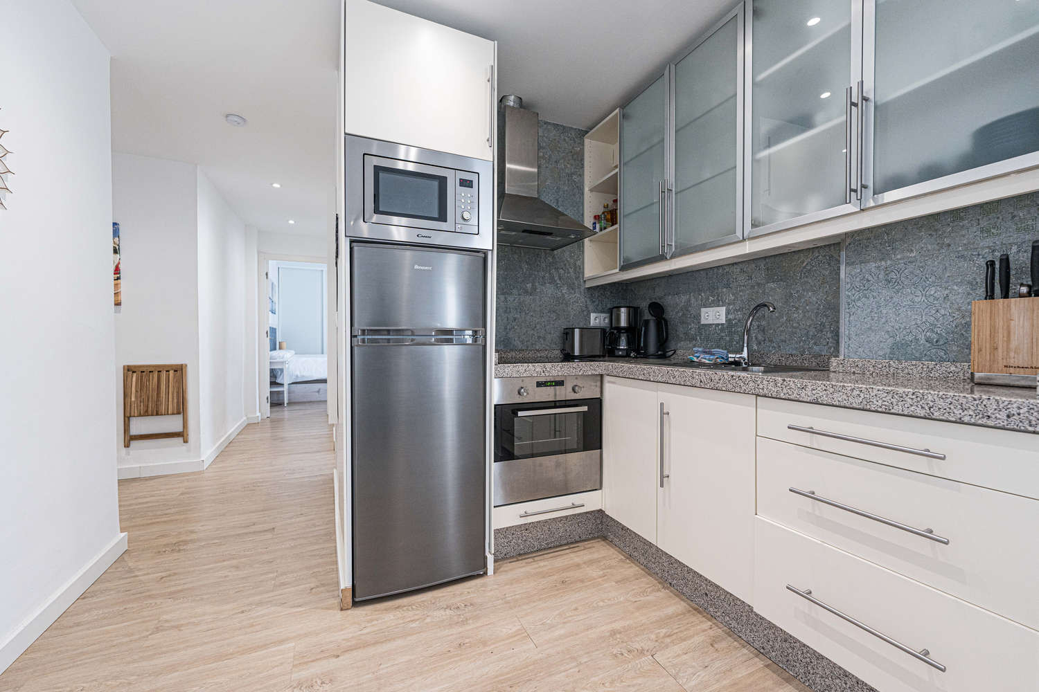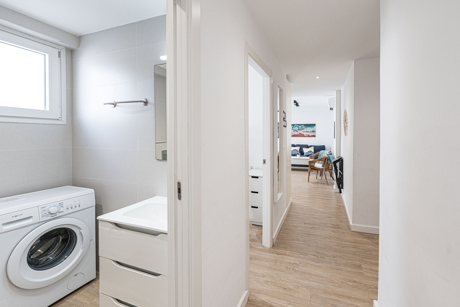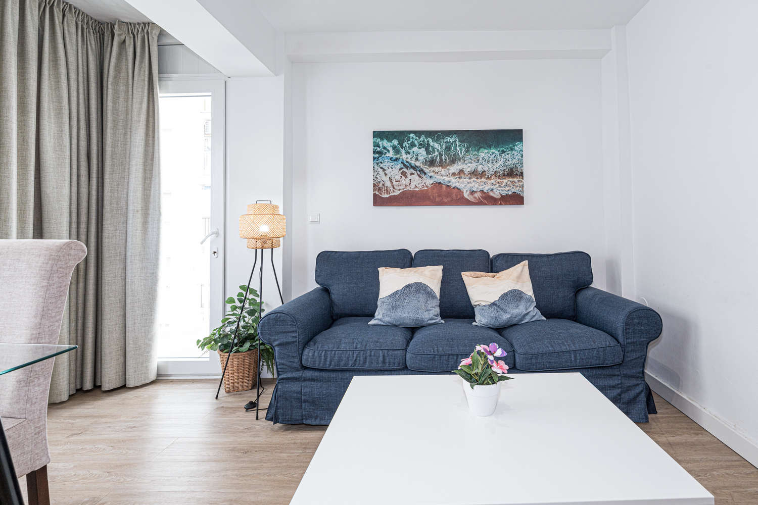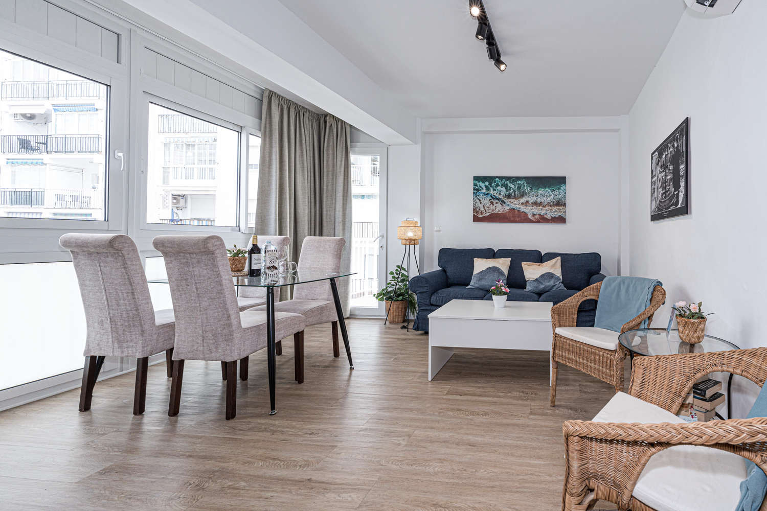 La conception est pensée pour profiter du beau temps. Le salon donne directement sur une terrasse avec vue latérale sur la mer, idéale pour prolonger l'après-midi lorsque vous rentrez de la plage. Comme il s'agit d'un immeuble sûr et calme, vous pouvez profiter de la lumière naturelle qui inonde tout l'appartement sans le bruit des rues les plus fréquentées.Avantages de séjourner à Gaviota 3