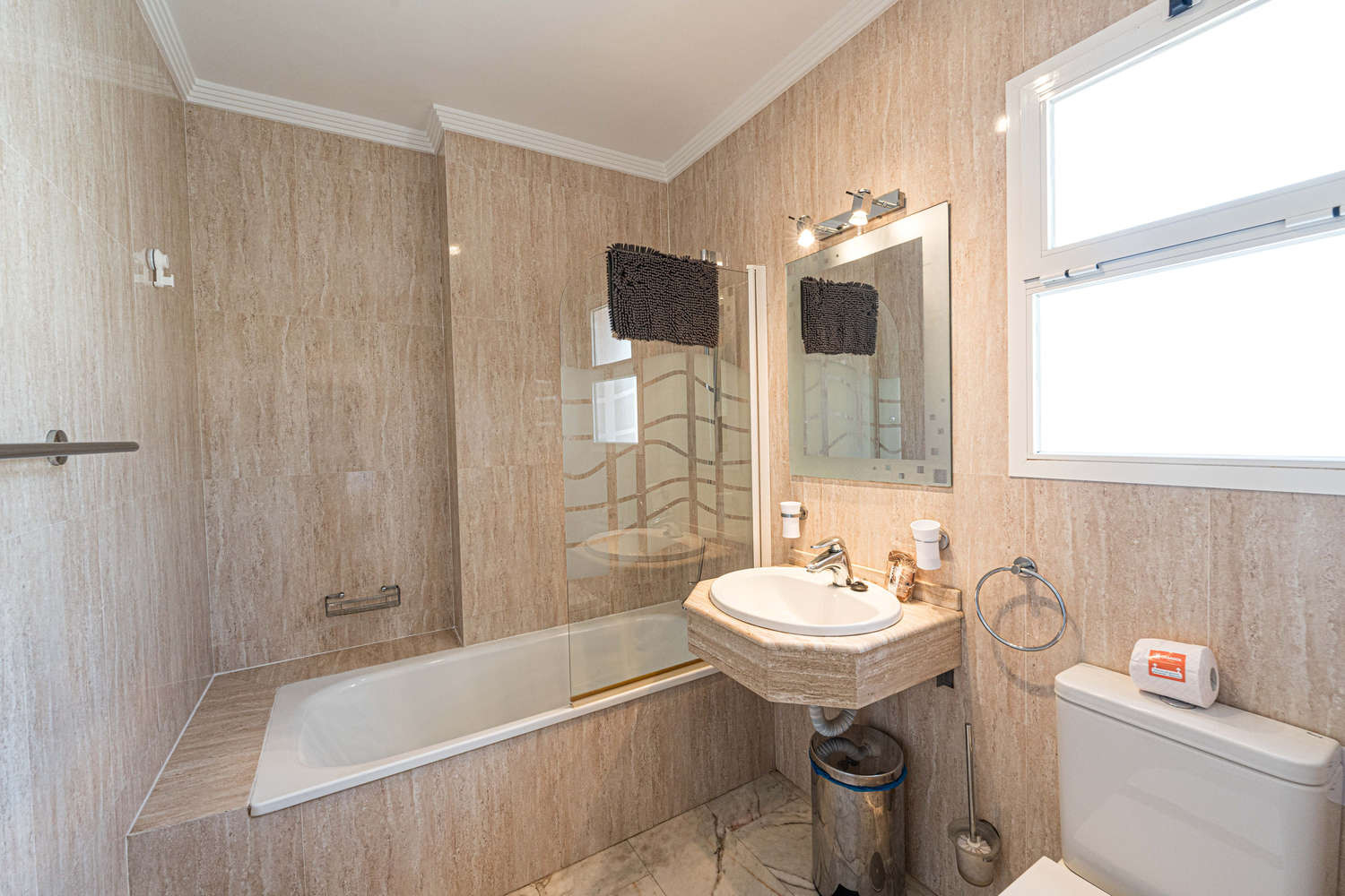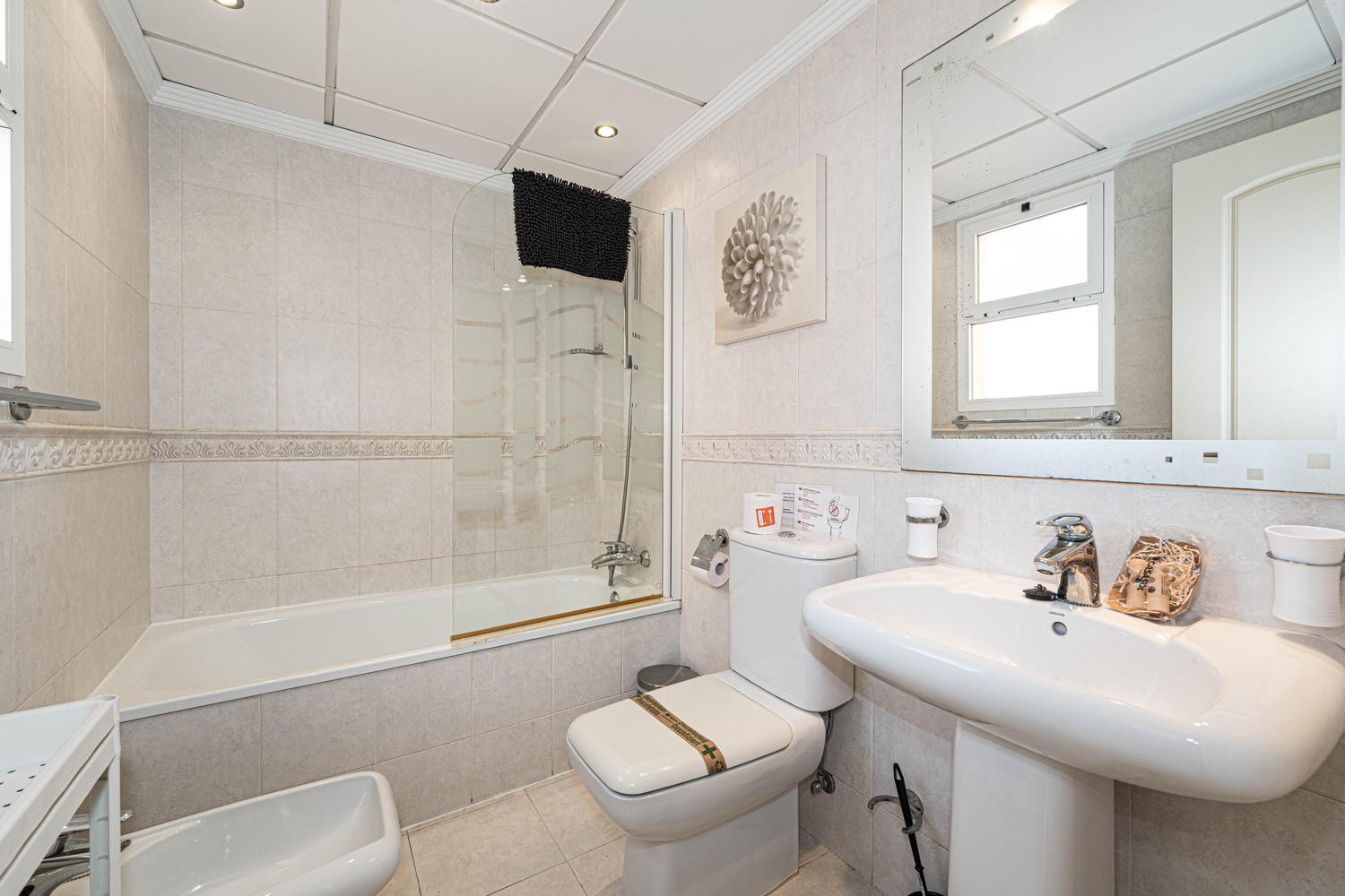 A nice 2 bedroom 2 bathroom apartment on the 3rd floor of the apartment block.Great views over the Mediterranean, everything you need for a holiday is in this apartment.We are here for a winter break for 3 weeks.