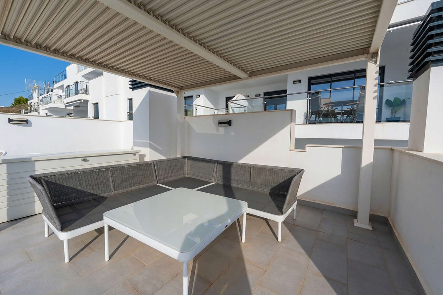 Moderne und hochwertige Penthousewohnung mit 2 wunderschönen Terrassen, toller Blick, gepflegte Anlage mit schönem Pool, Auto ist erforderlich, 2 wunderschöne Buchten fussläufig erreichbar, Oktober perfekte Reisezeit mit wunderbaren Strandwetter, gute Kommunikation mit Casasol
