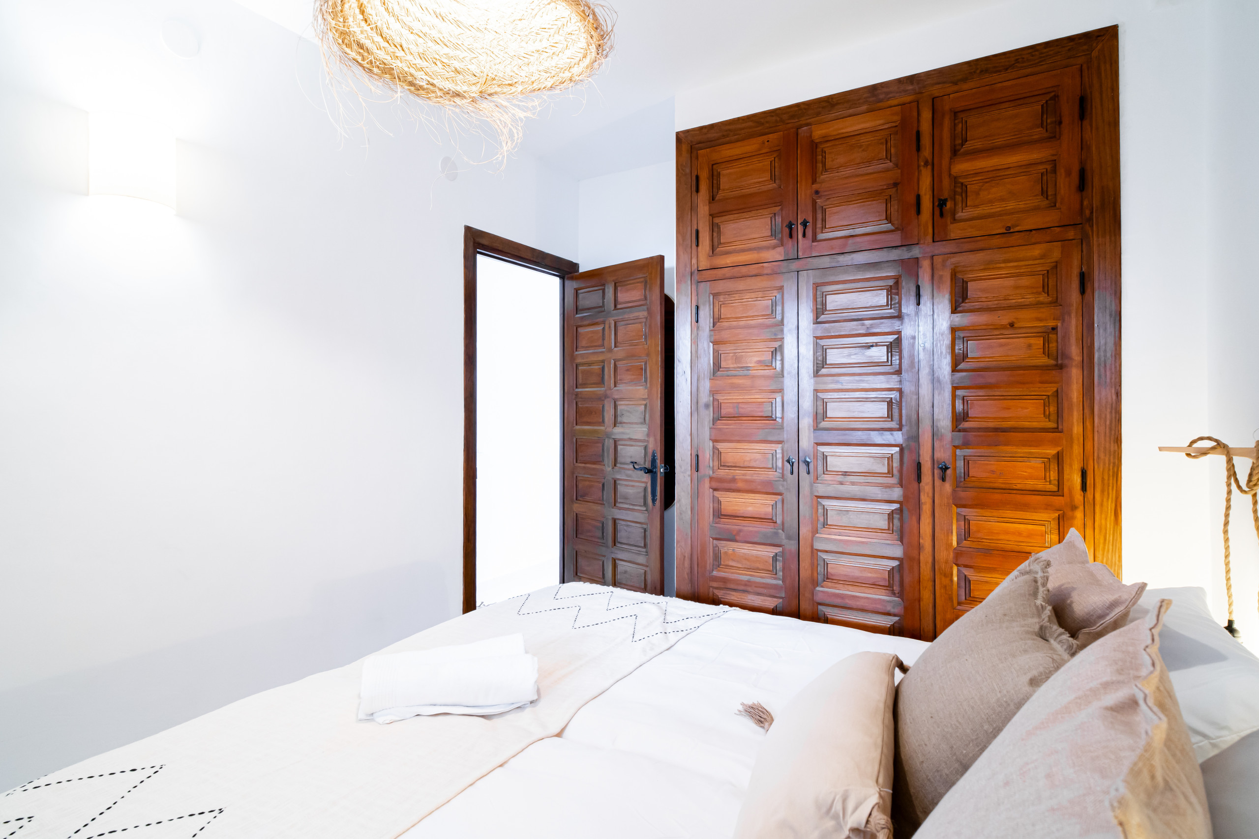 L'appartement dispose de deux chambres lumineuses : la chambre principale est équipée d'un lit king-size (180x200) avec un matelas de haute qualité, tandis que la deuxième chambre offre deux lits simples de 90x200 cm. Les deux chambres comprennent des tables de chevet et de grandes armoires, alliant confort moderne et atmosphère sereine et naturelle.