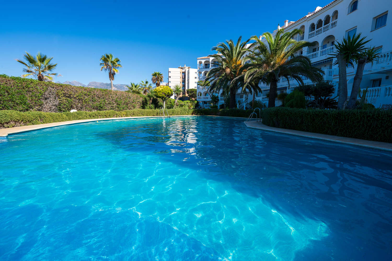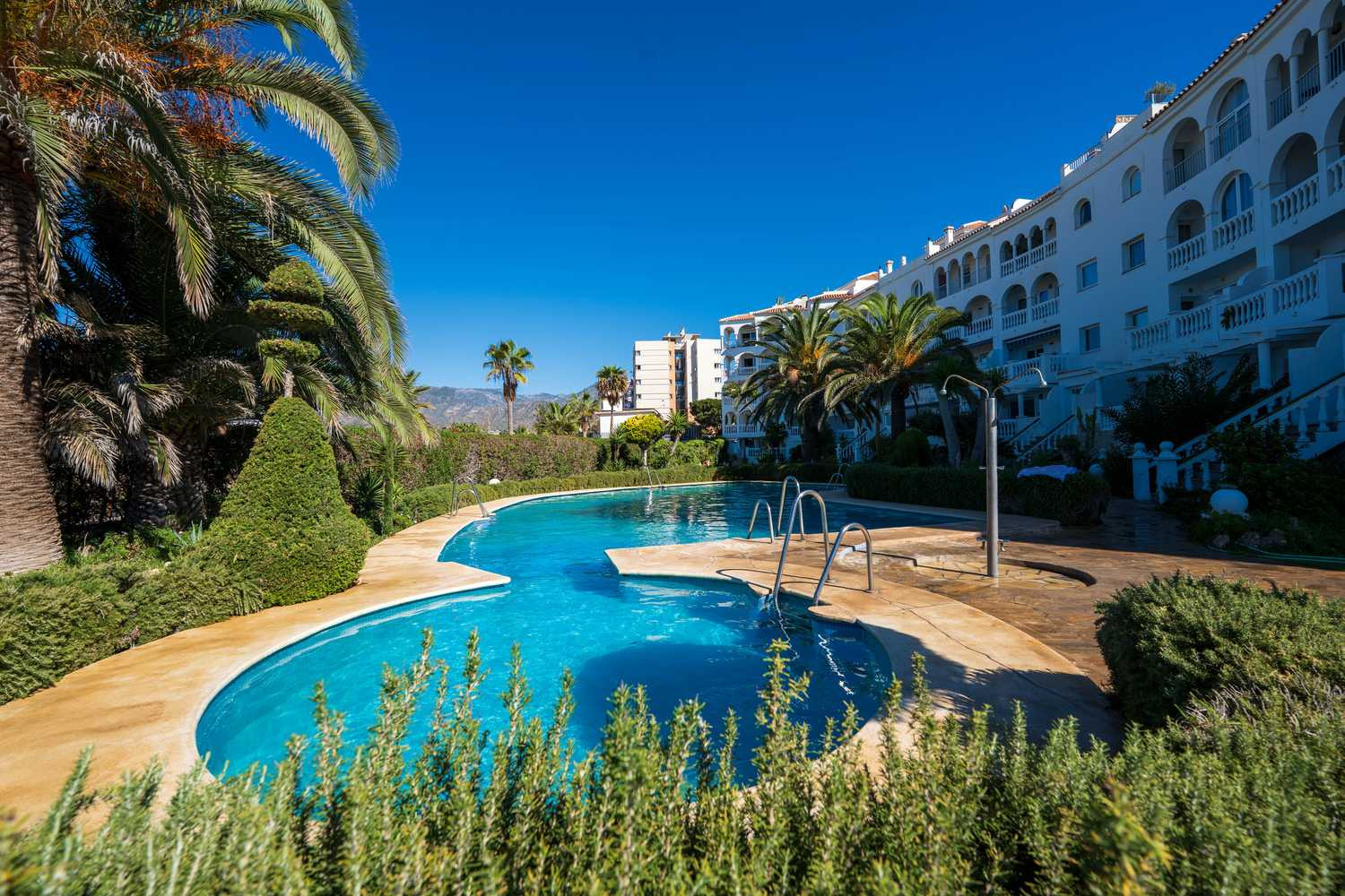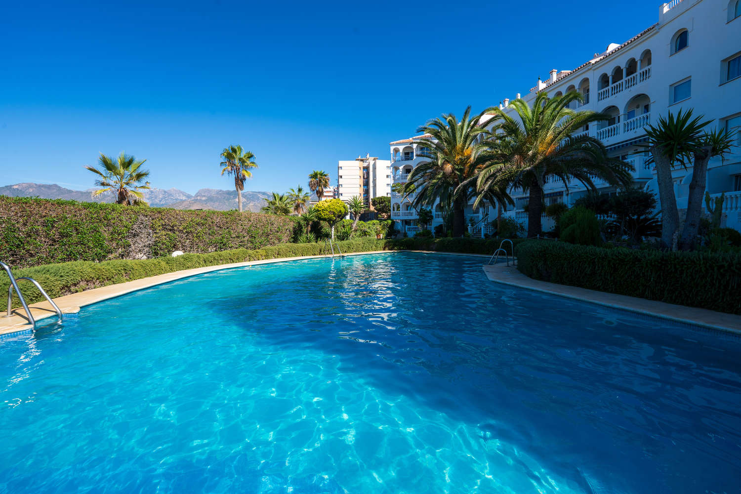 Stella Maris est l'un des emplacements en bord de mer les plus prisés de Nerja en raison de sa situation en bord de mer. Au sein de cet immeuble, cet appartement en rez-de-chaussée en bord de mer à Nerja se distingue par une caractéristique qui le rend particulièrement confortable : c'est le seul de tout le complexe Stella Maris dont la terrasse privée donne directement sur le jardin et la piscine.Ici, l'expérience de vacances est fluide et sans obstacle. Profitez de 120 m² d'espace intérieur dans ce spacieux appartement de vacances à Nerja et de la liberté de sortir de votre salon, de traverser la terrasse et de piquer une tête dans la piscine ou de descendre à la plage sans ascenseur ni couloir.