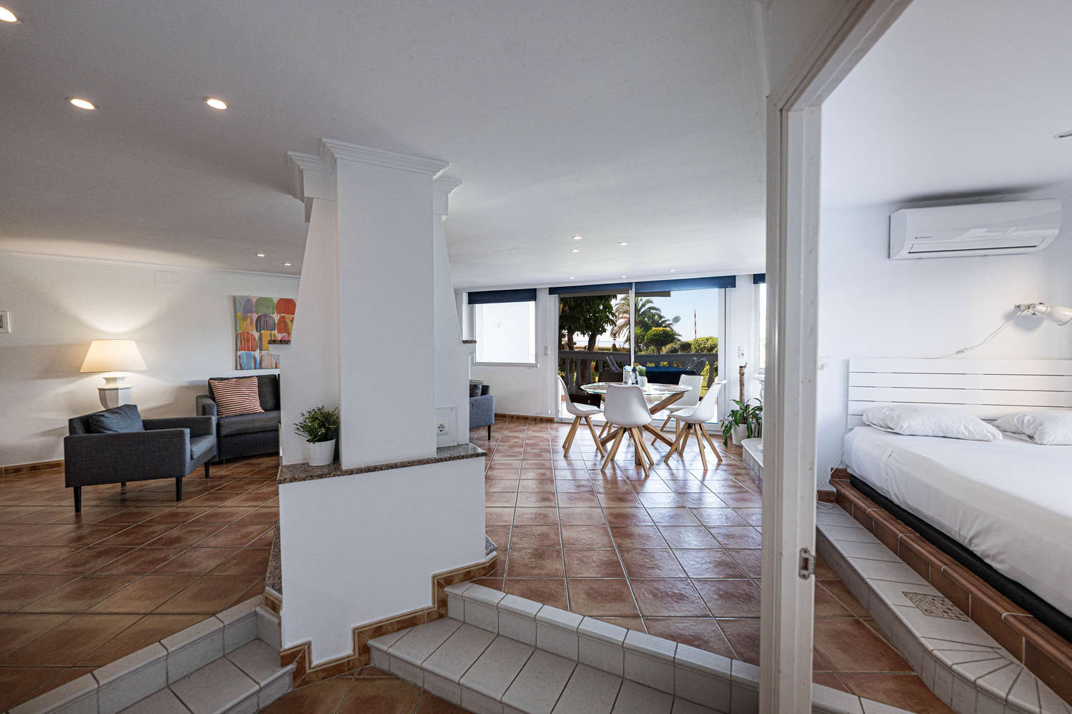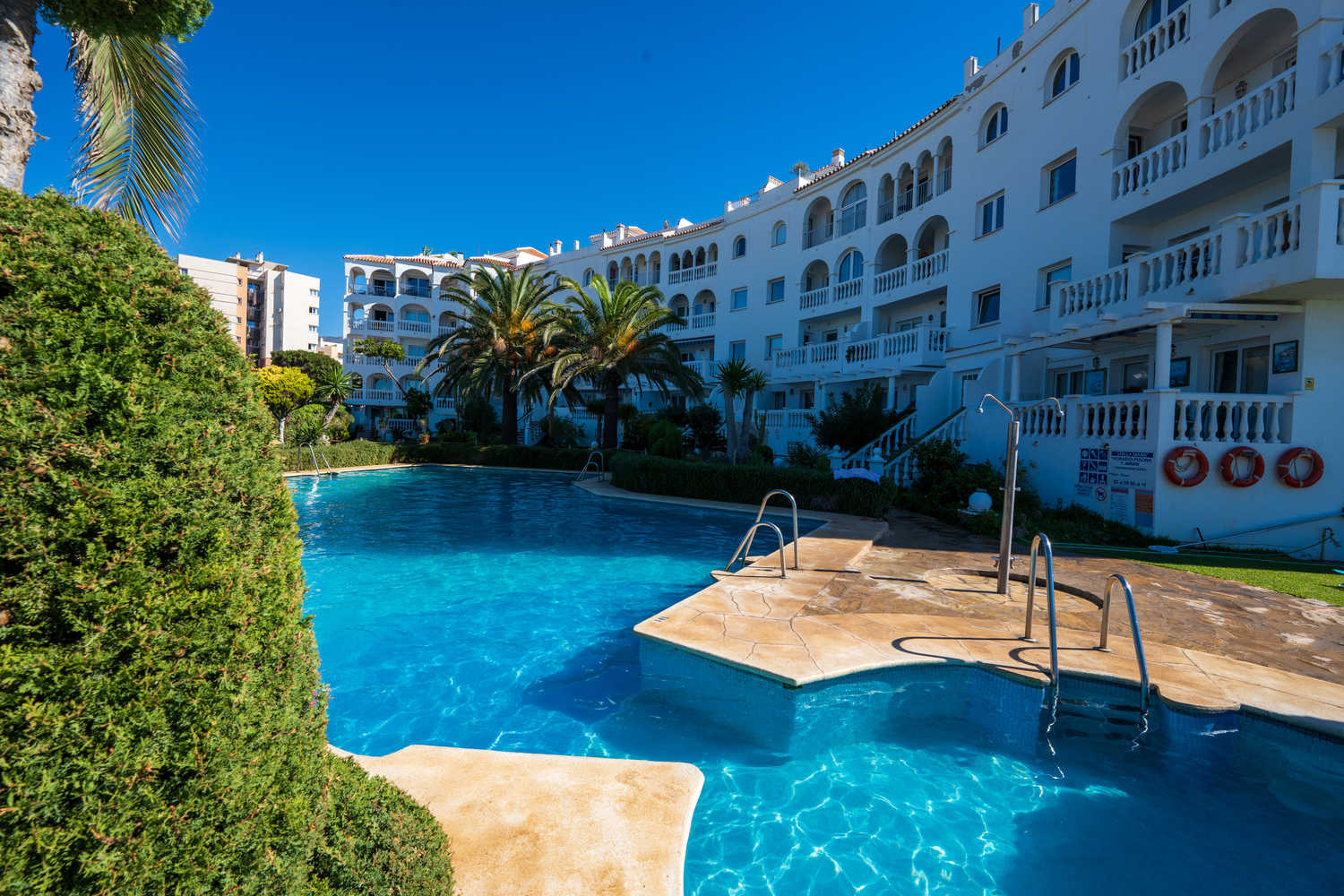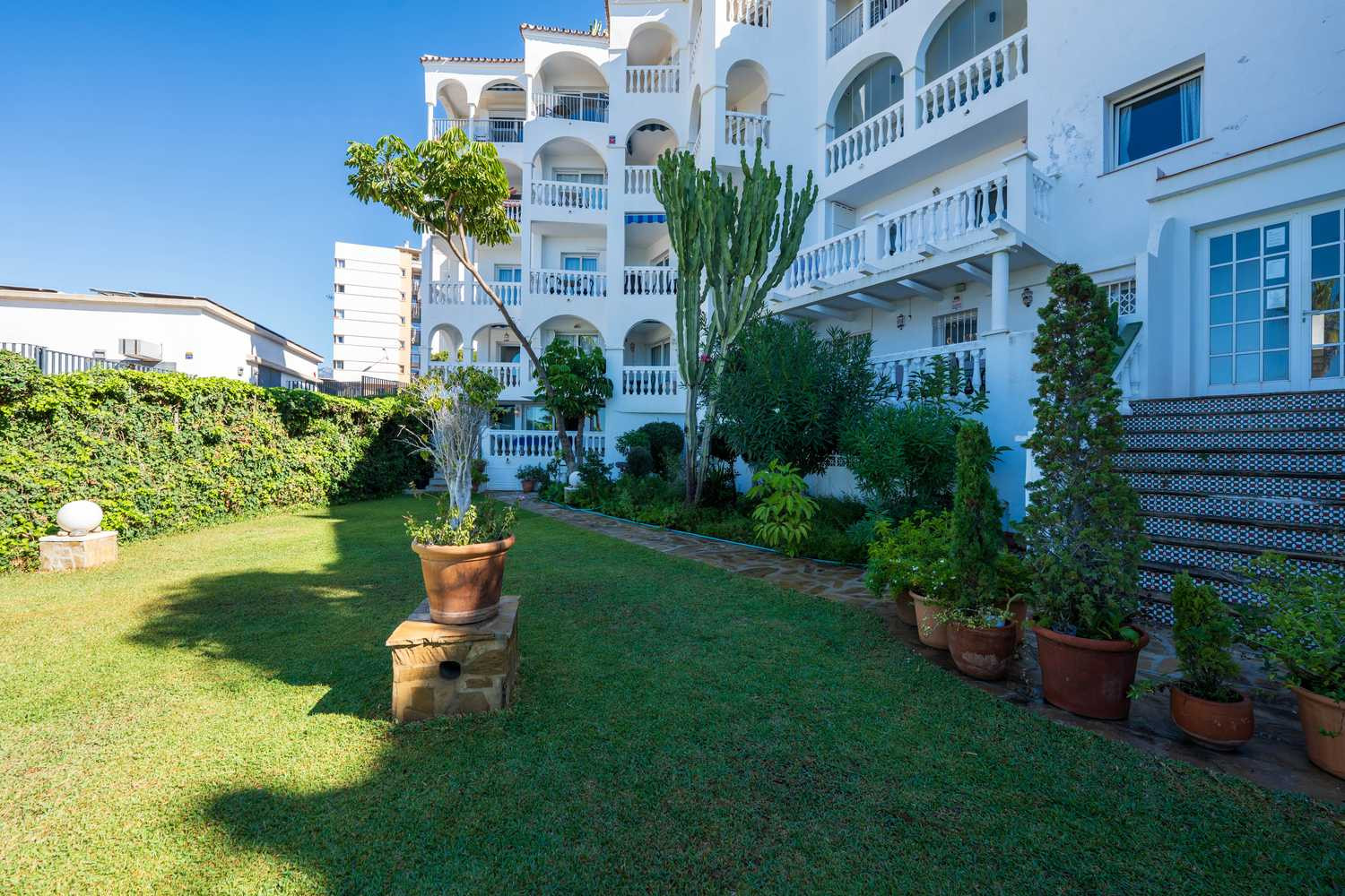 Stella Maris est l'un des emplacements en bord de mer les plus prisés de Nerja en raison de sa situation en bord de mer. Au sein de cet immeuble, cet appartement en rez-de-chaussée en bord de mer à Nerja se distingue par une caractéristique qui le rend particulièrement confortable : c'est le seul de tout le complexe Stella Maris dont la terrasse privée donne directement sur le jardin et la piscine.Ici, l'expérience de vacances est fluide et sans obstacle. Profitez de 120 m² d'espace intérieur dans ce spacieux appartement de vacances à Nerja et de la liberté de sortir de votre salon, de traverser la terrasse et de piquer une tête dans la piscine ou de descendre à la plage sans ascenseur ni couloir.