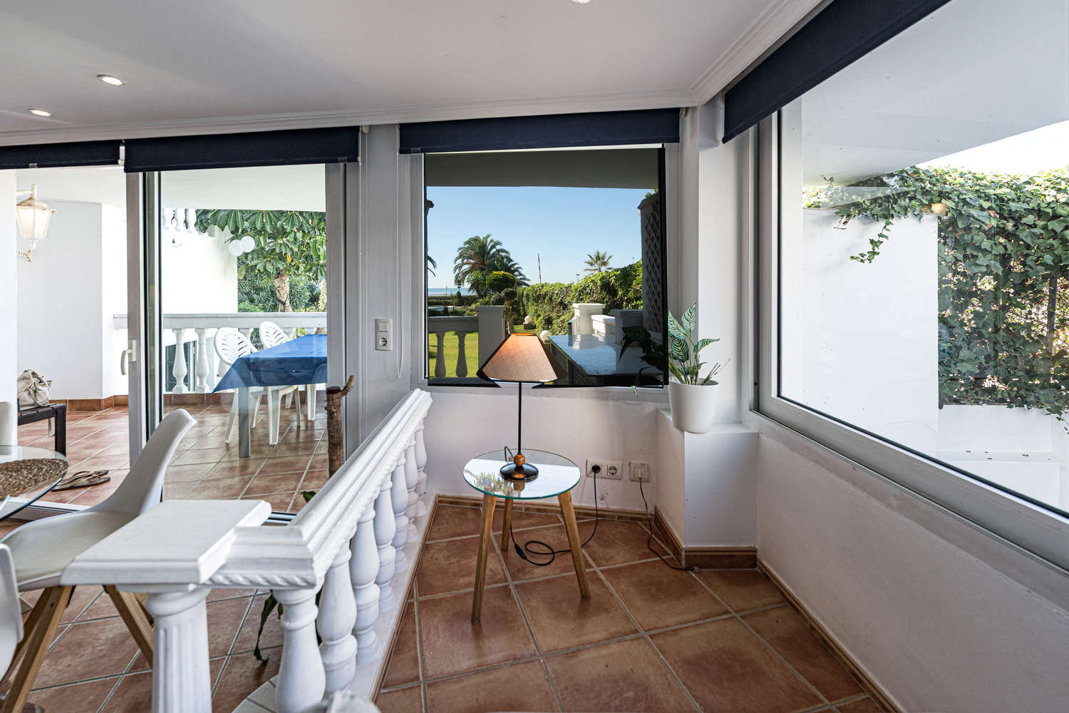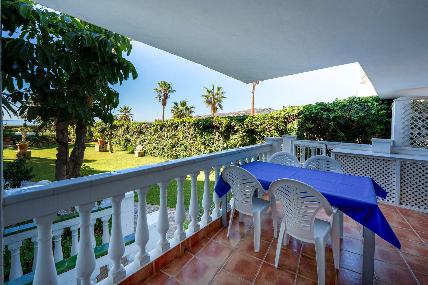 La terrasse privée est une extension naturelle de la maison. Avec un accès direct exclusif au jardin et à la piscine communs, elle vous permet de profiter du climat de Nerja en toute liberté. Vous pouvez prendre votre petit-déjeuner en admirant la vue sur la mer et vous baigner dans la piscine en quelques secondes, profitant ainsi pleinement de la vie en plein air dans cet appartement en bord de mer avec piscine à Nerja.