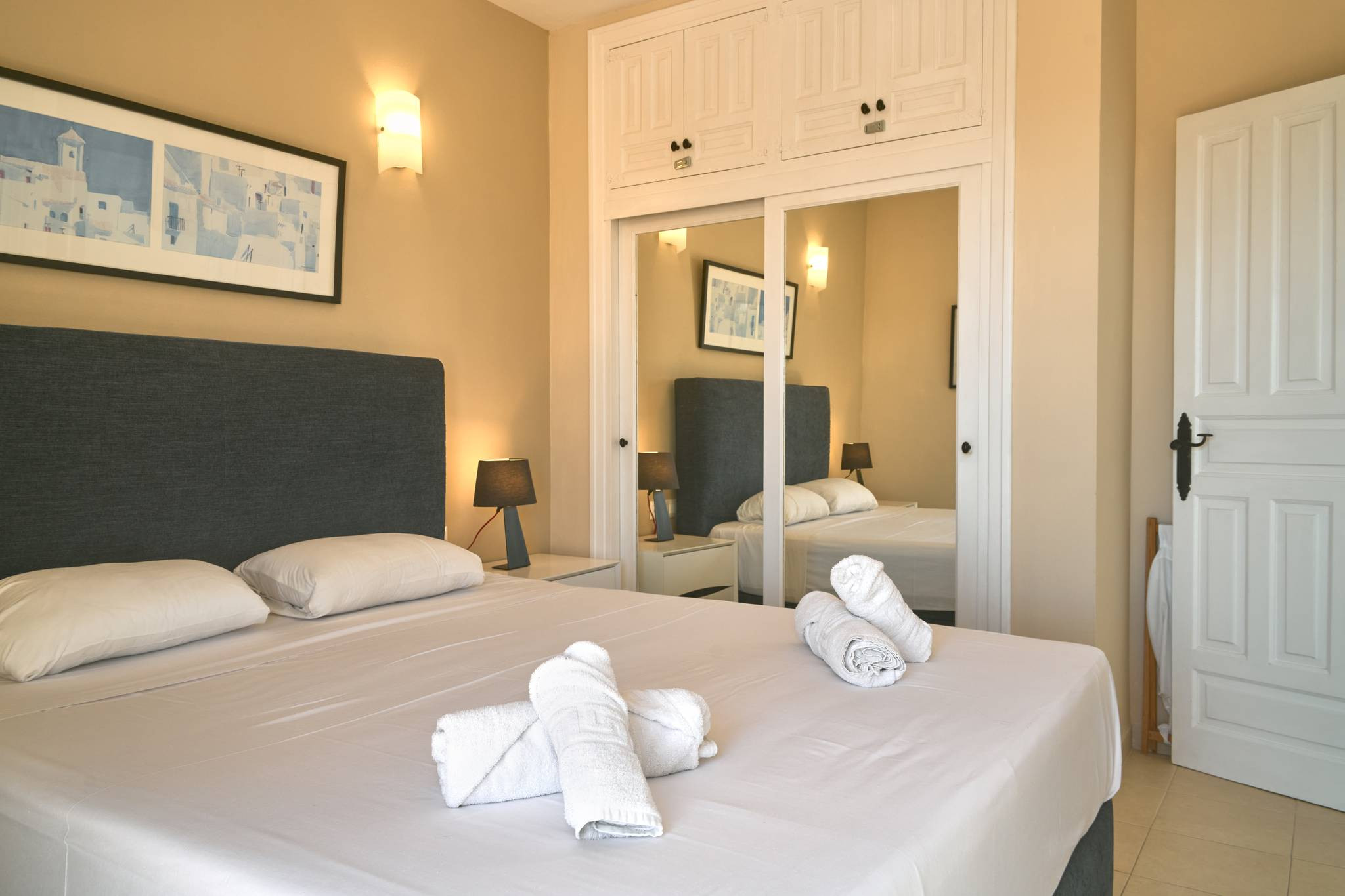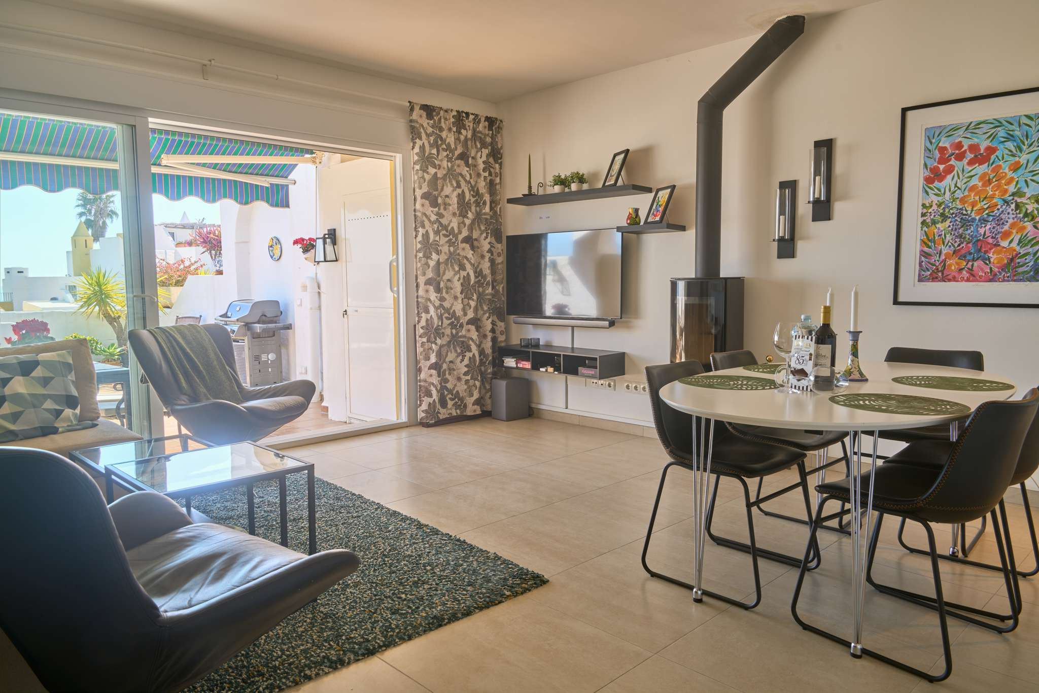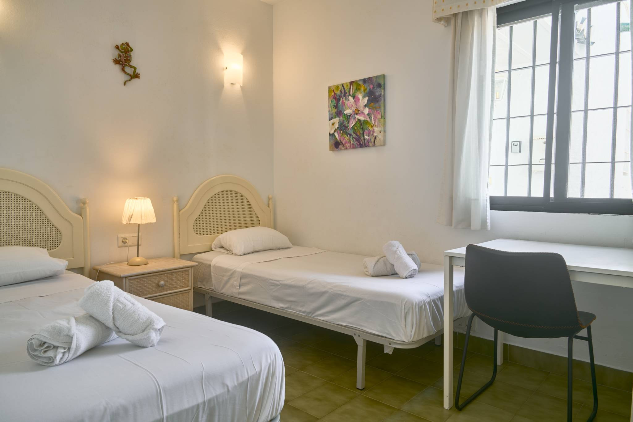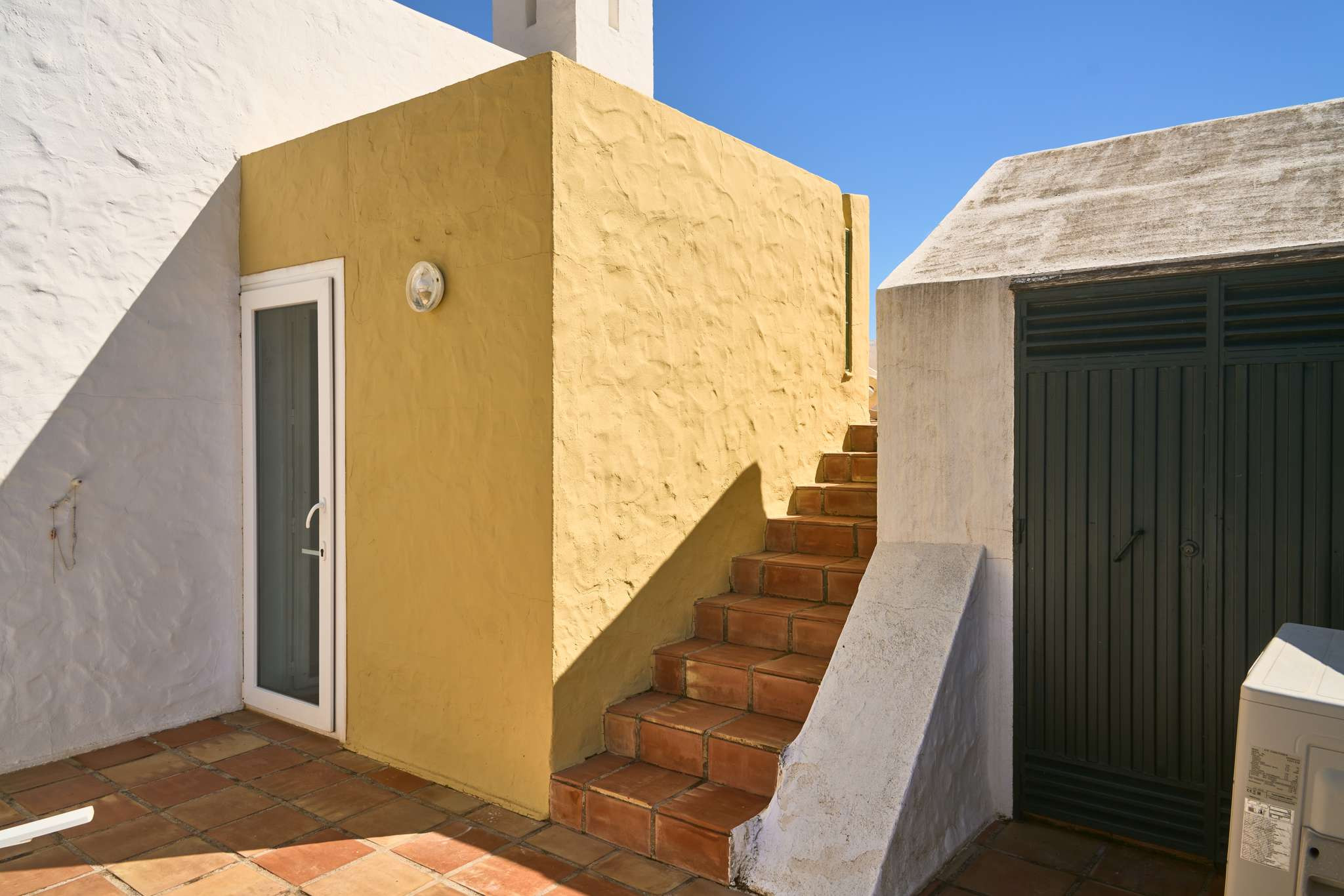 Le logement est distribué de manière efficace pour offrir de l'intimité à ses 4 occupants. Au rez-de-chaussée, vous trouverez un spacieux salon-salle à manger avec accès direct à la terrasse principale et une cuisine avec lave-vaisselle, micro-ondes et tous les ustensiles nécessaires pour les longs séjours. Cet étage dispose d'une chambre avec deux lits simples et d'une salle de bain avec douche. À l'étage supérieur se trouve la chambre principale avec un grand lit, une salle de bain privée et un balcon indépendant, permettant à chaque couple ou membre de la famille d'avoir son propre espace de repos.Terrasses sur plusieurs niveaux et solarium privé
