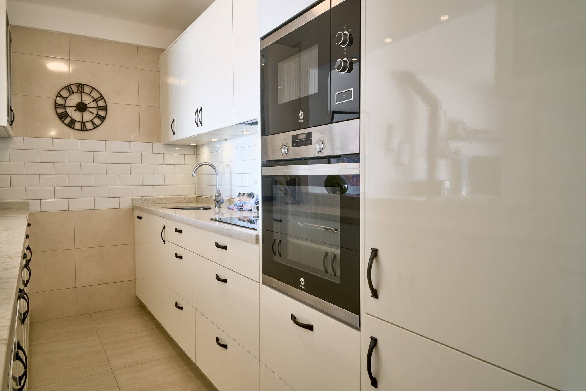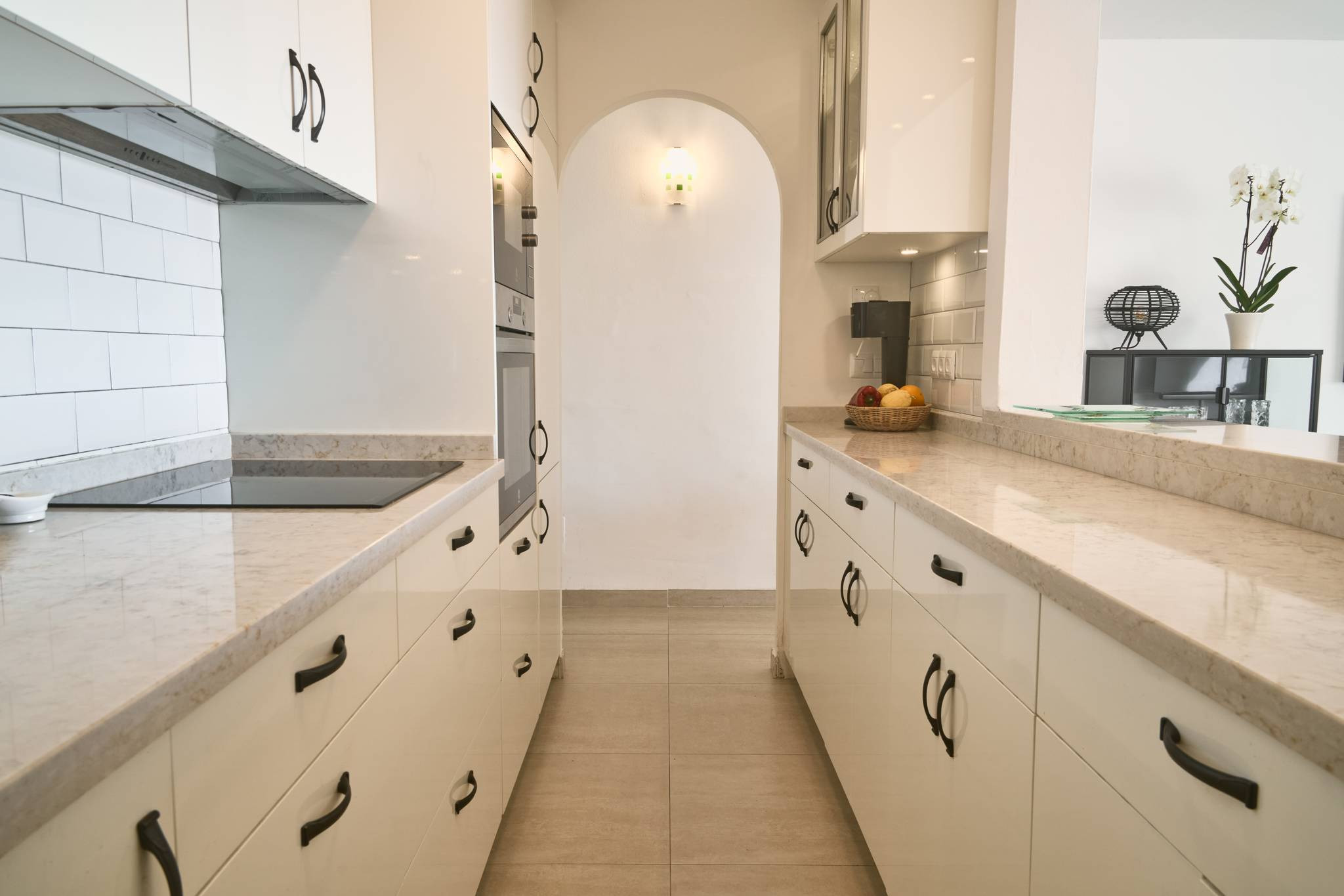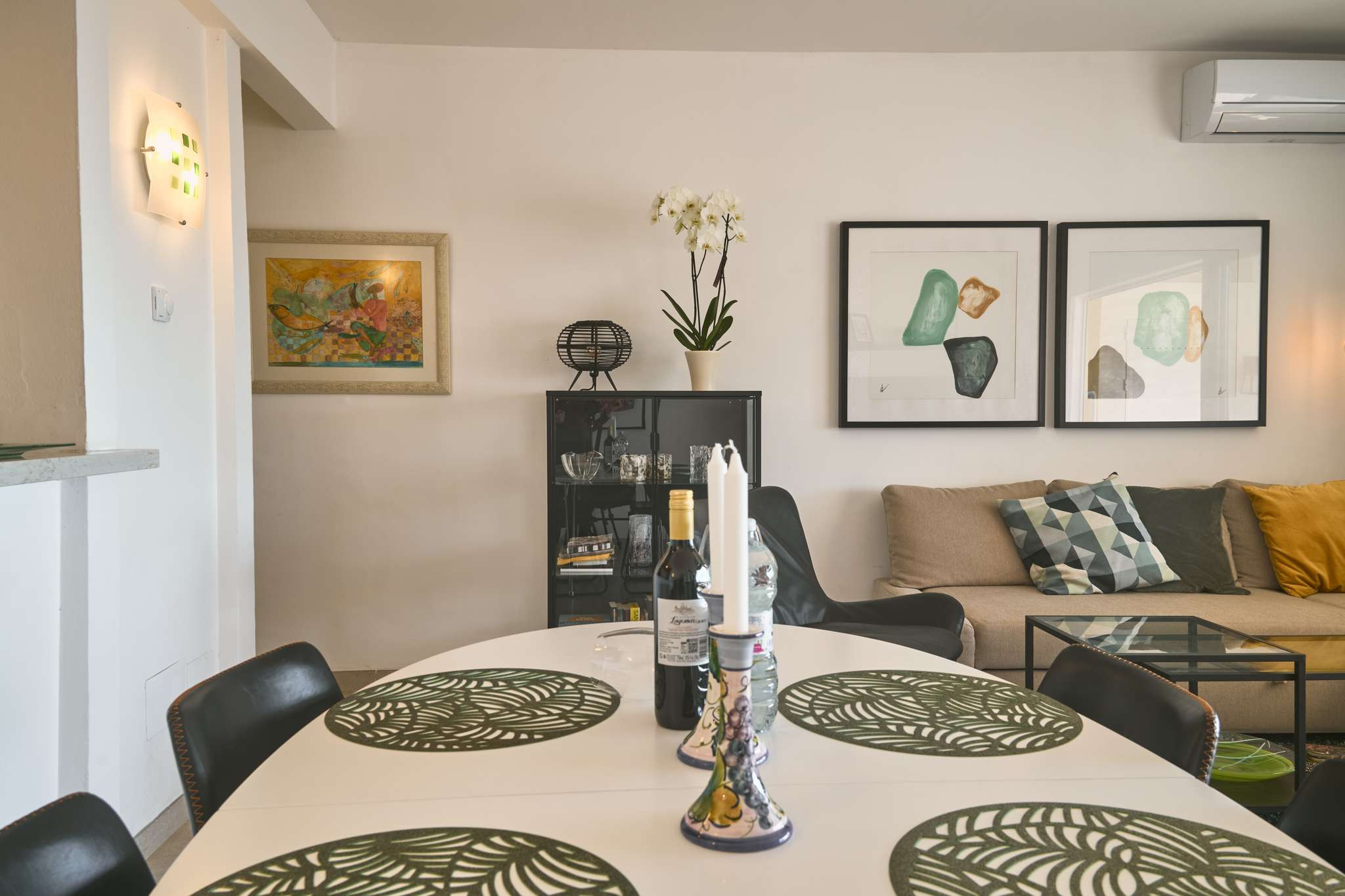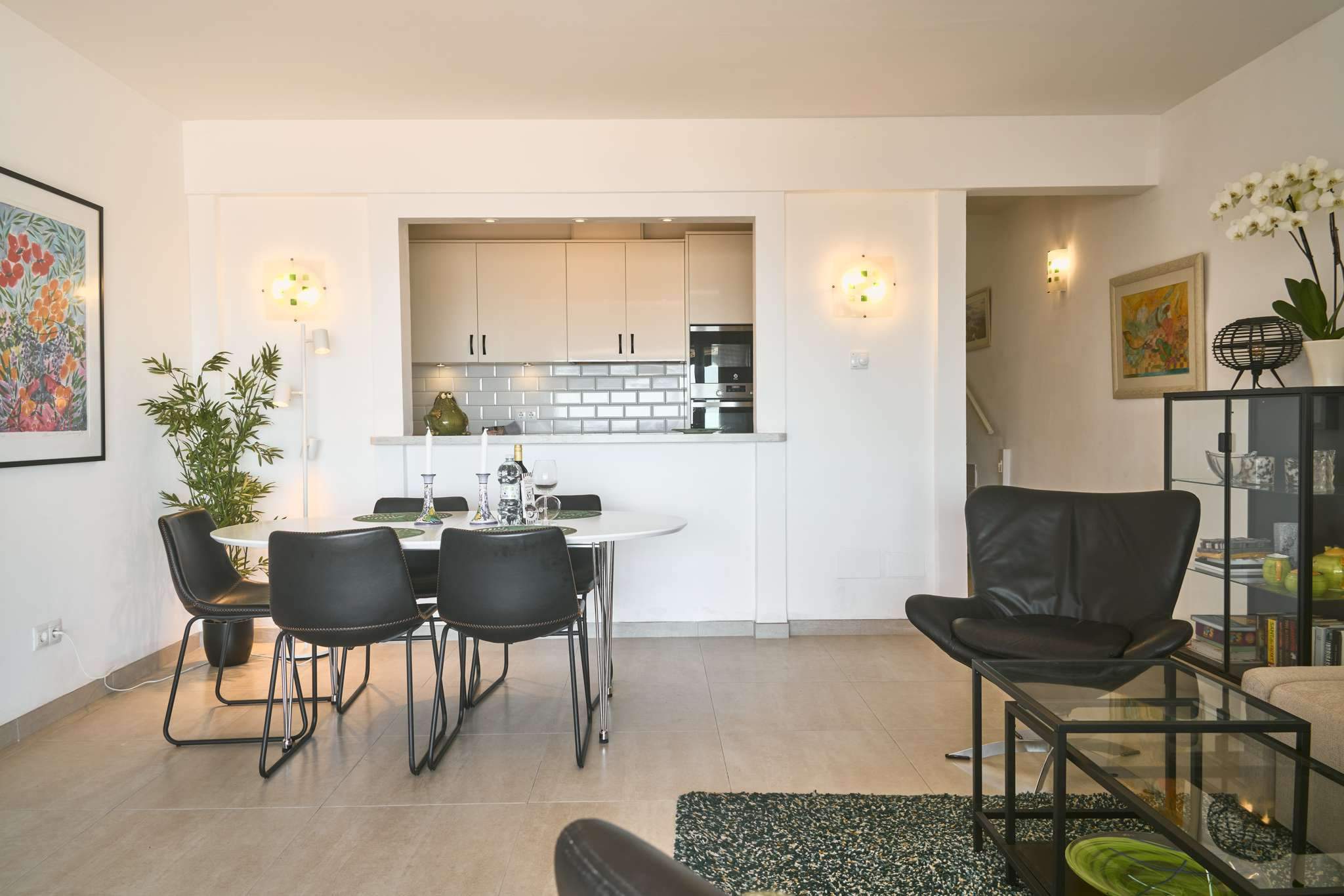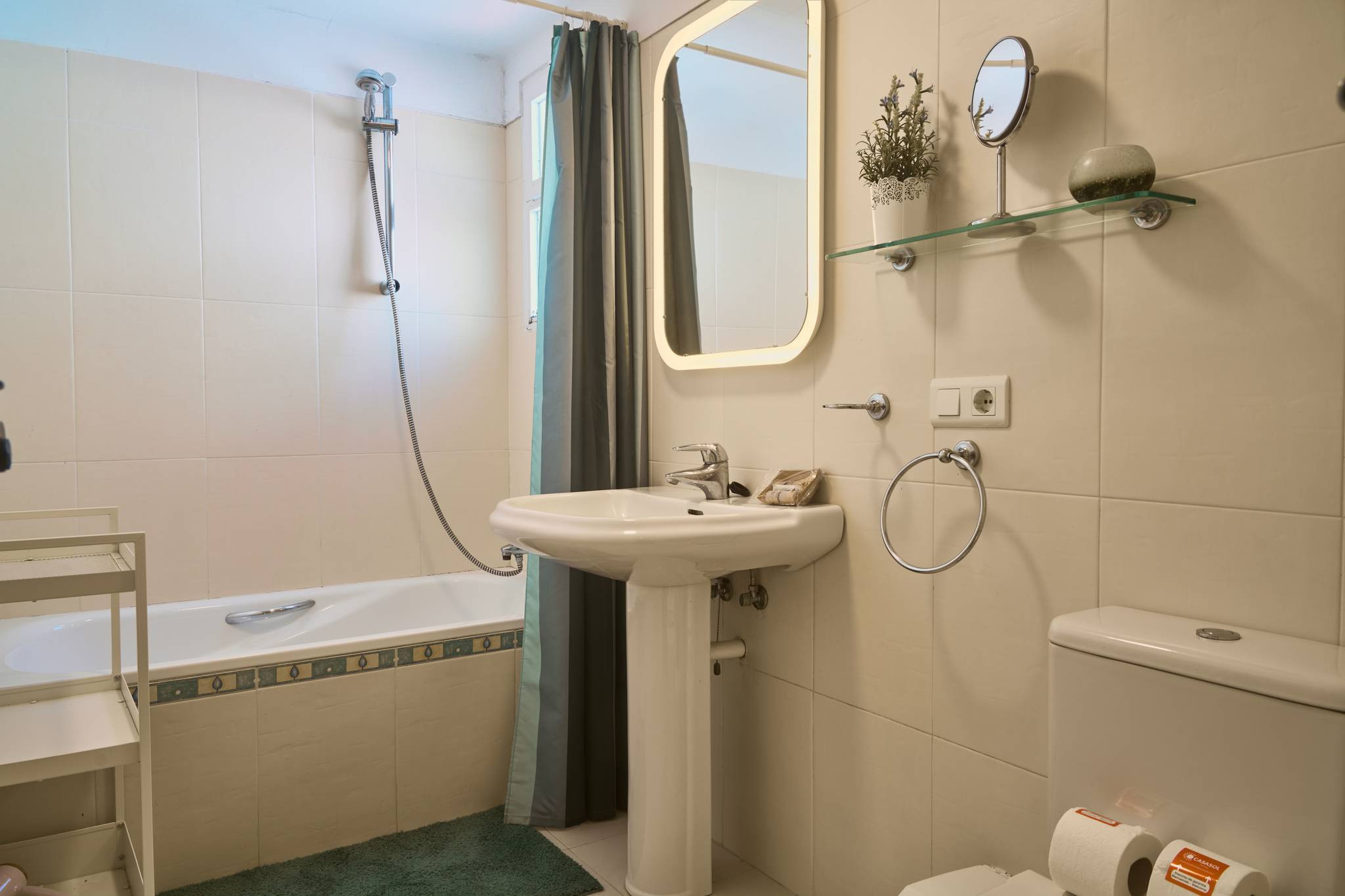 Le logement est distribué de manière efficace pour offrir de l'intimité à ses 4 occupants. Au rez-de-chaussée, vous trouverez un spacieux salon-salle à manger avec accès direct à la terrasse principale et une cuisine avec lave-vaisselle, micro-ondes et tous les ustensiles nécessaires pour les longs séjours. Cet étage dispose d'une chambre avec deux lits simples et d'une salle de bain avec douche. À l'étage supérieur se trouve la chambre principale avec un grand lit, une salle de bain privée et un balcon indépendant, permettant à chaque couple ou membre de la famille d'avoir son propre espace de repos.Terrasses sur plusieurs niveaux et solarium privé