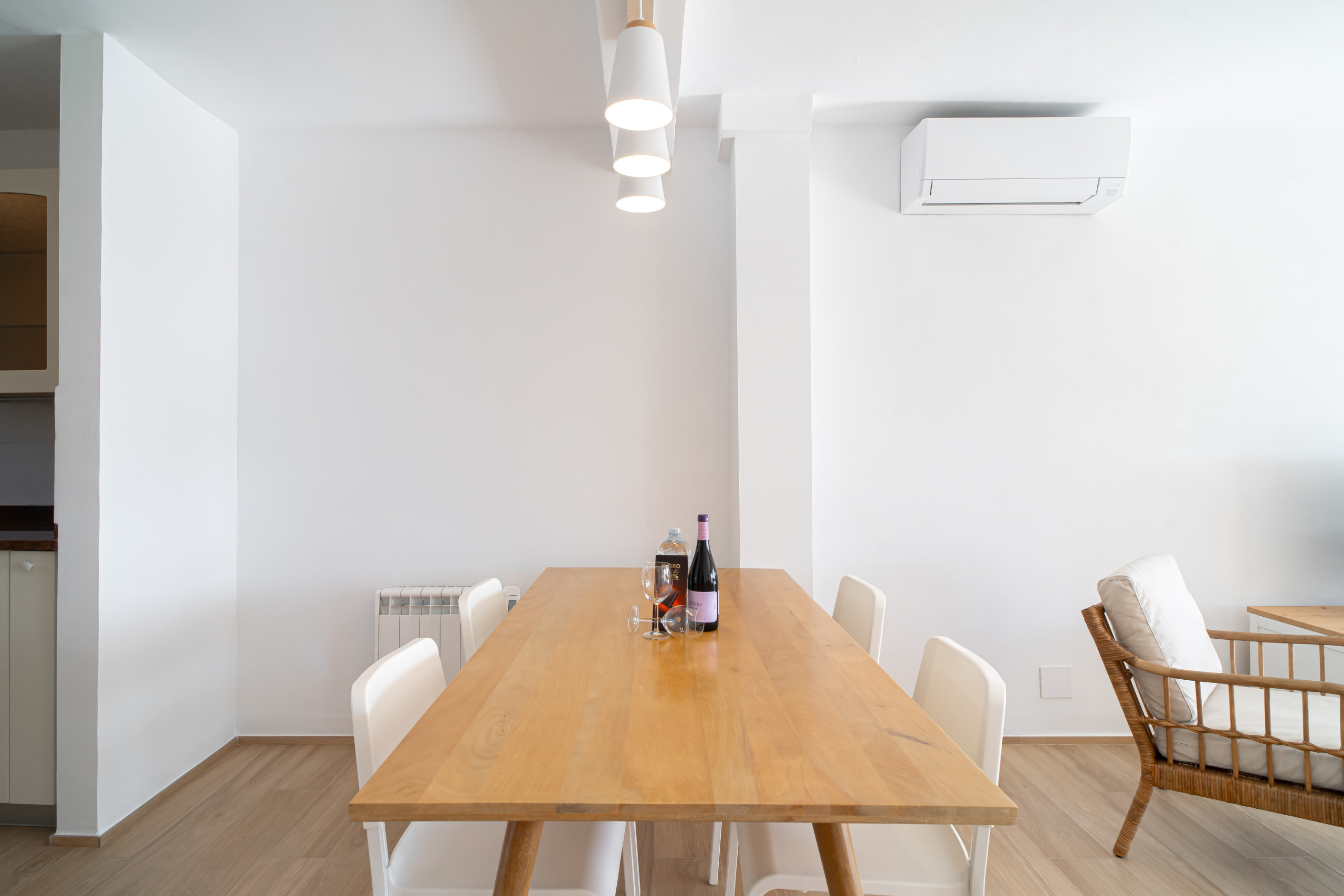 ✔ Salon-salle à manger spacieux et lumineux avec accès direct à la terrasse.