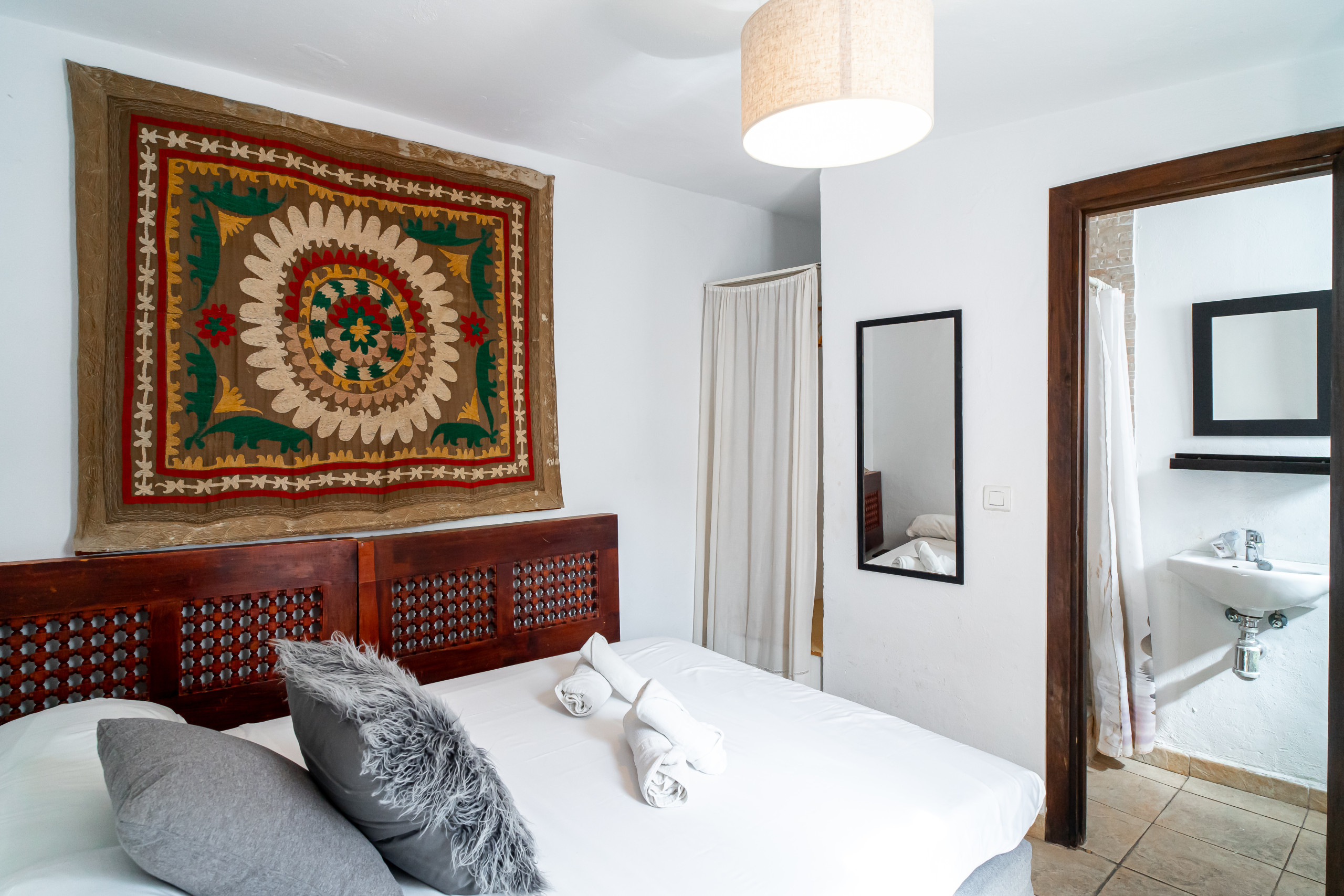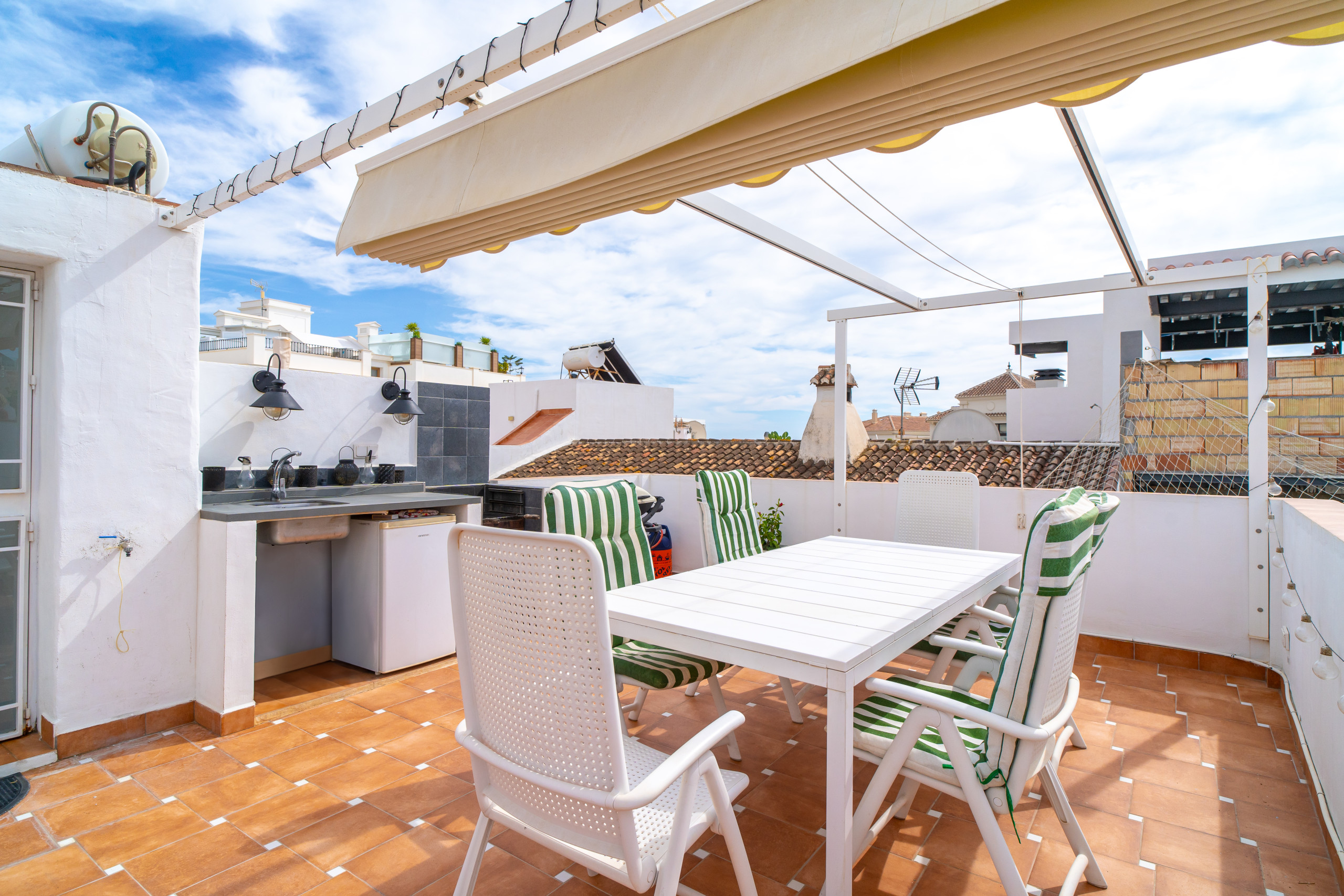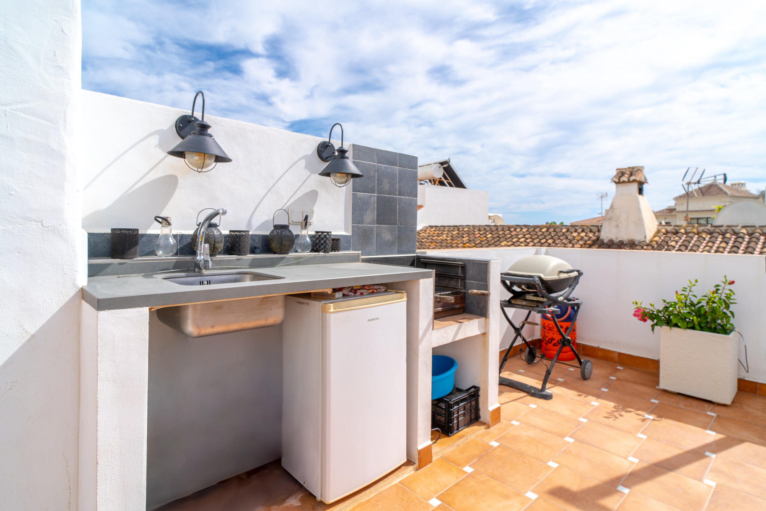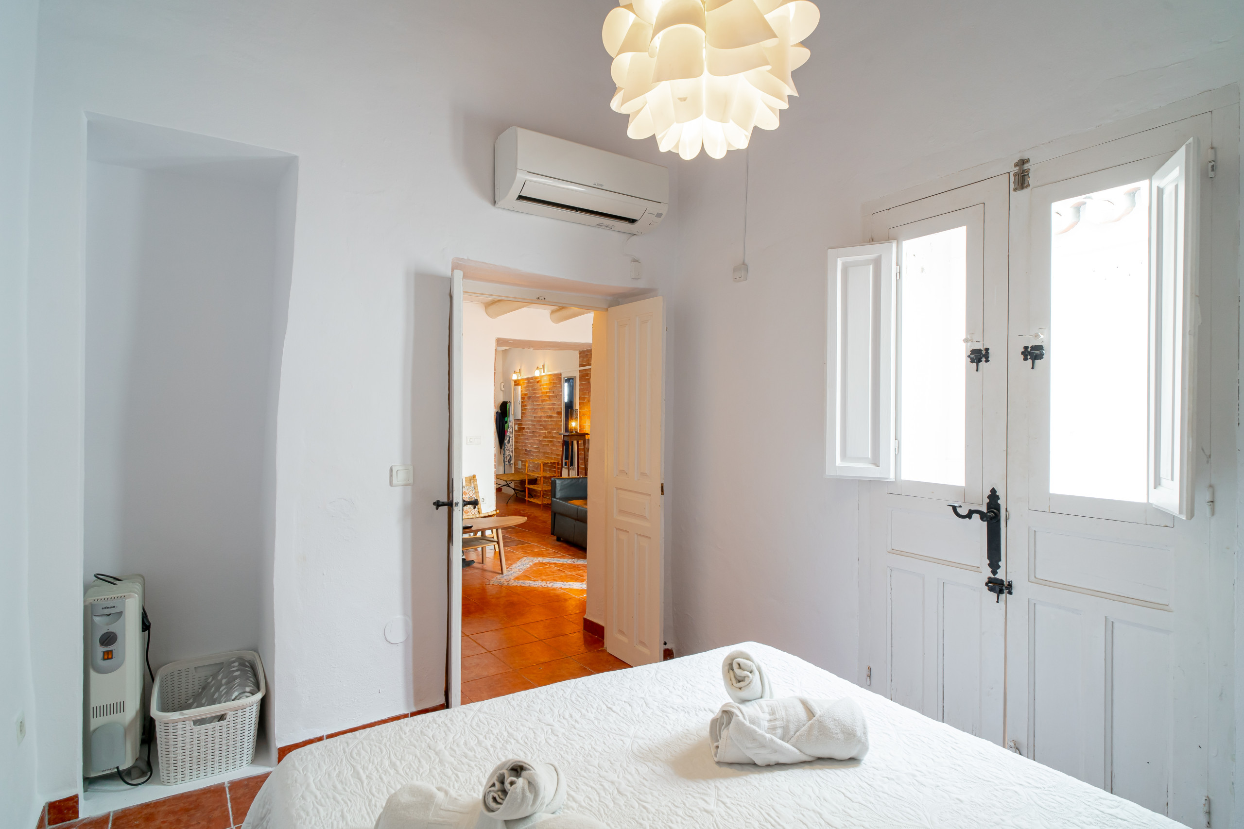 En entrant, vous êtes accueilli par une grande cuisine entièrement équipée, à côté d'un salon confortable avec télévision internationale et accès Internet haut débit. Au rez-de-chaussée, vous trouverez également une chambre principale avec un lit double, qui donne sur un magnifique patio andalou. De l'autre côté de la cour, une chambre séparée avec salle de bains privative vous assure une intimité maximale, idéale pour les couples ou les compagnons qui souhaitent avoir leur propre espace. Au-dessus de cette chambre, une petite terrasse, accessible par un escalier en colimaçon et dotée d'un canapé relaxant, constitue l'endroit idéal pour se détendre.