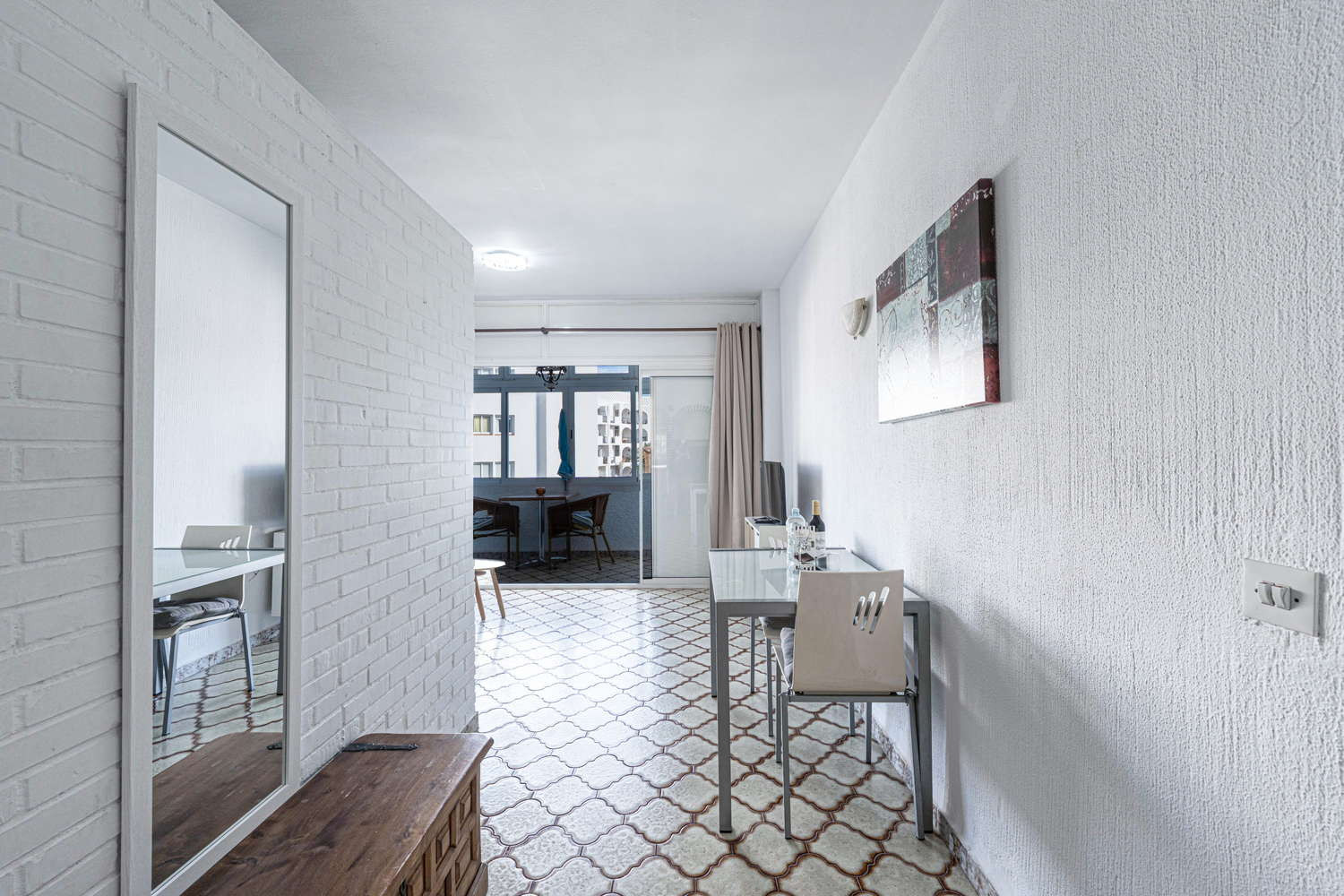 Un studio simplement meublé mais bien situé avec le centre ville à quelques 5 minutes à pied et les marches qui descendent à la plage de Carabeillo à quelques 100 mètres. Il y a une belle vue sur mer depuis le balcon et le bâtiment dispose d'une piscine communautaire. Il y a également un parking communautaire pour l'immeuble (sur demande).